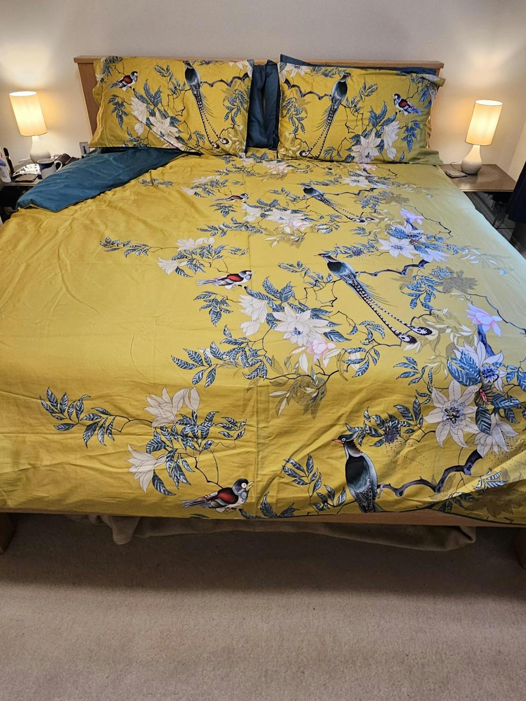 Thank you so much for choosing the Golden Birds set. It’s lovely to hear it was a recommendation from your sister, and we’re really glad you’re happy with your purchase already. We hope it feels just as good once it’s on the bed.
